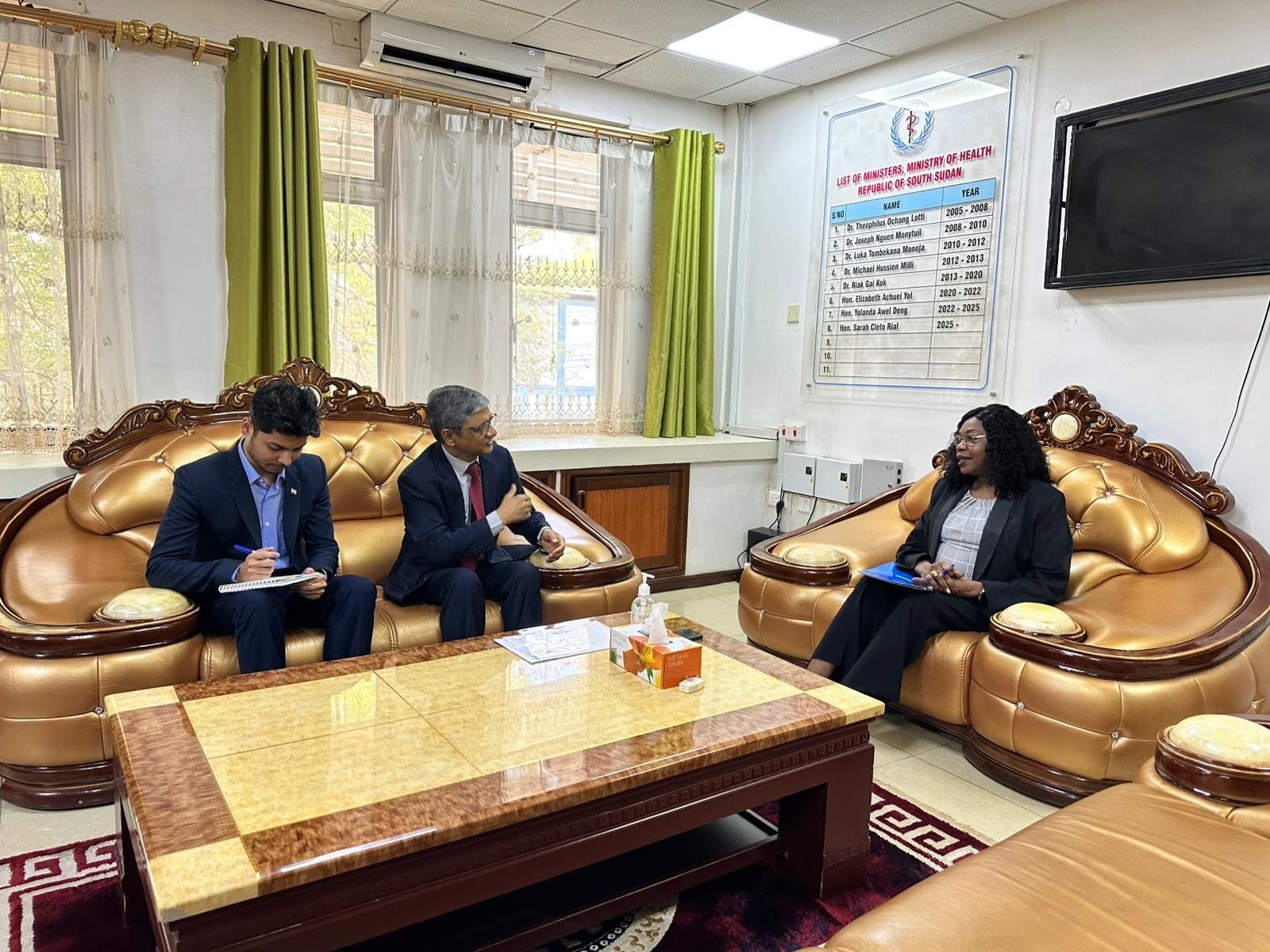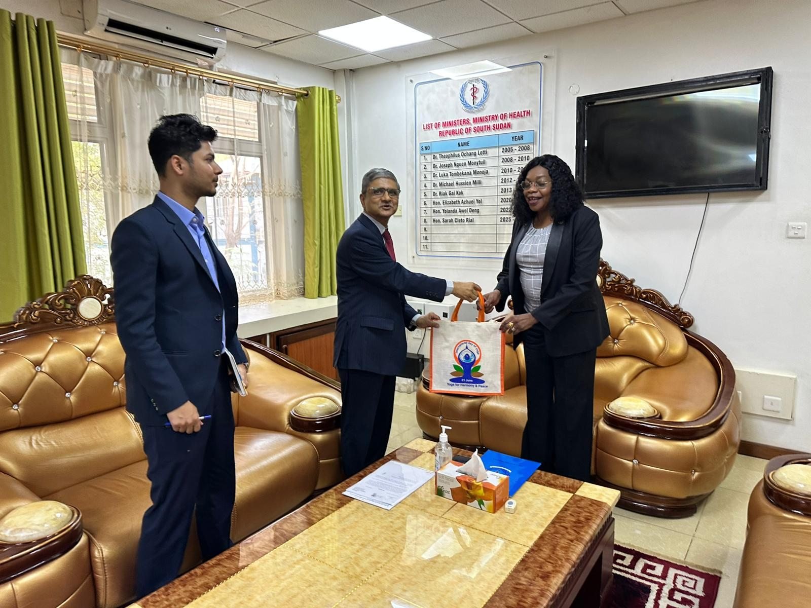 Ambassador met with the Hon. Sarah Cleto Rial, Minister of Health, Republic of South Sudan, before her departure for India to attend the 2nd WHO Traditional Medicine Global Summit. - December 16, 2025